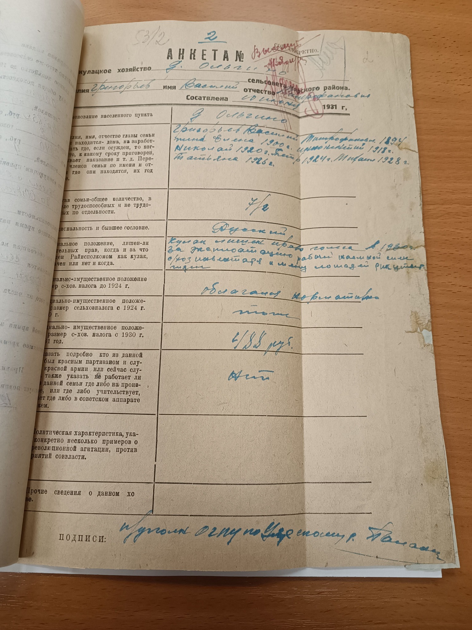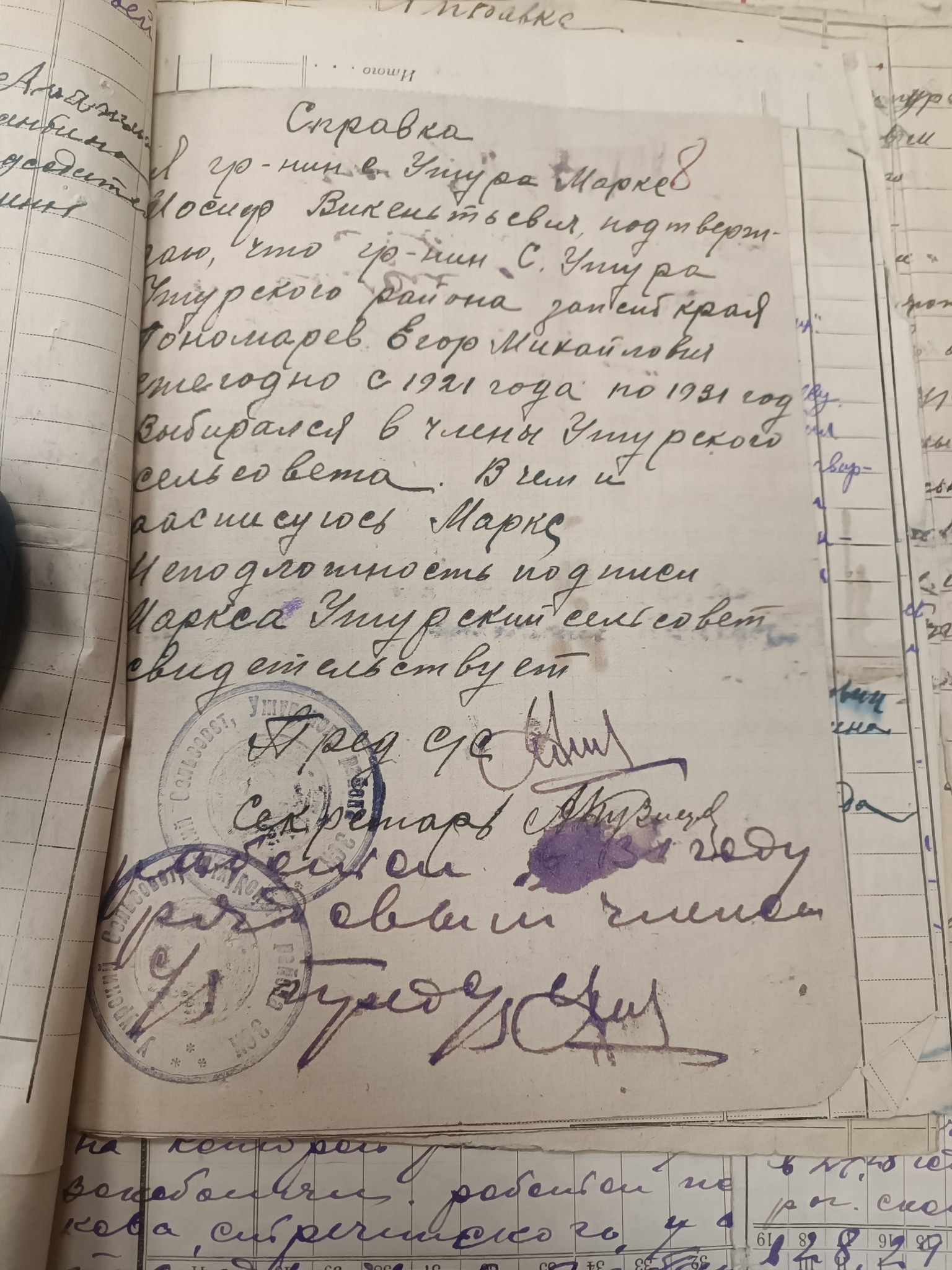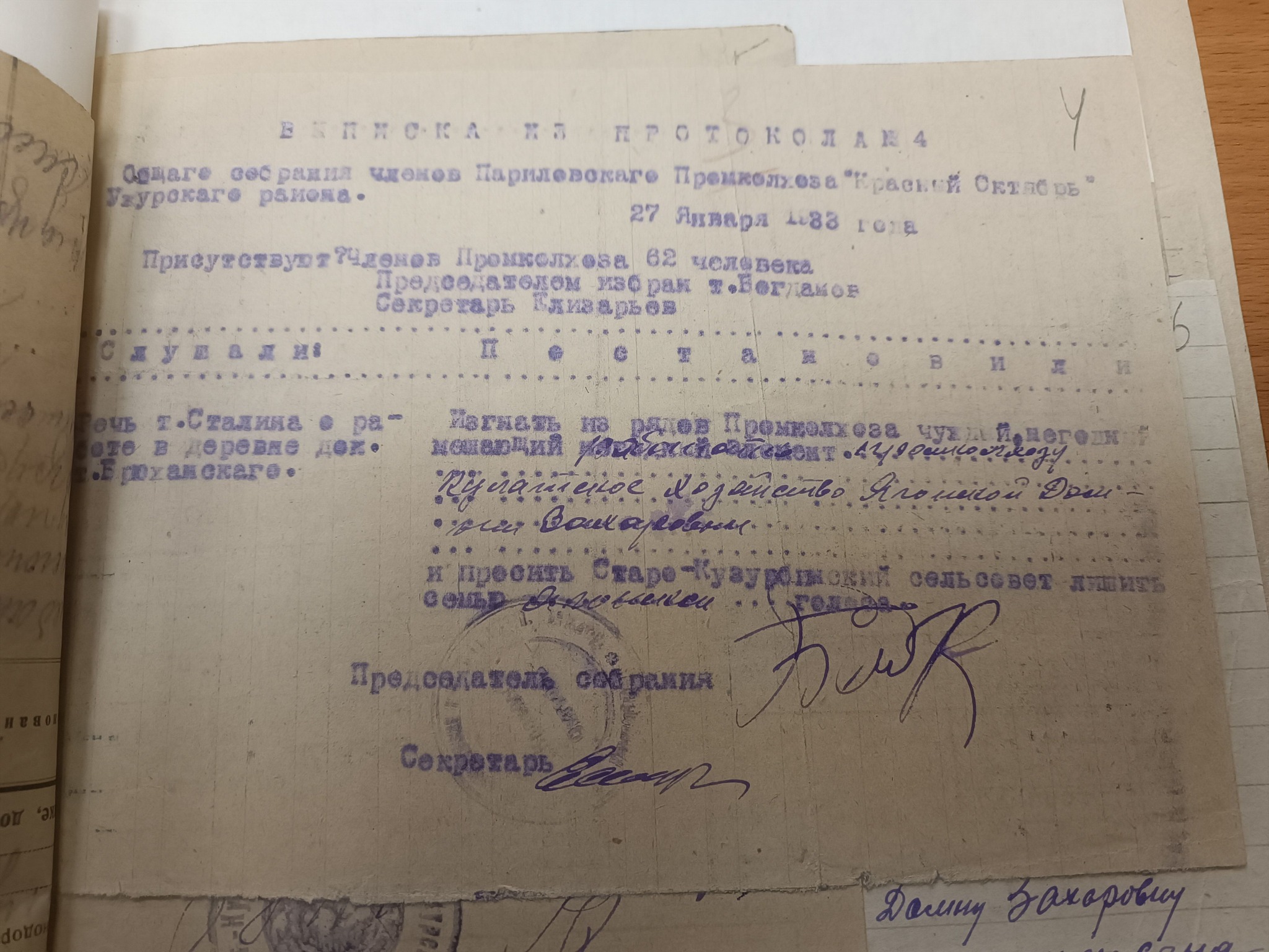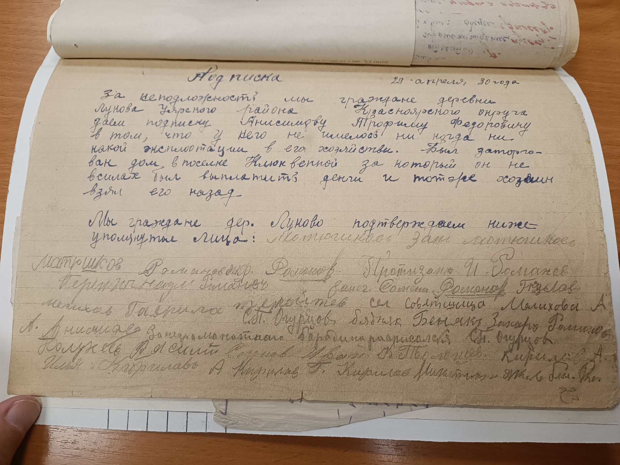 Так что, работая с делами лишенцев в курагинском архиве, все время натыкался на фамилии своих одноклассников. И, как и ожидал, в делах Курского сельсовета встретил дело прадеда моей школьной любви.