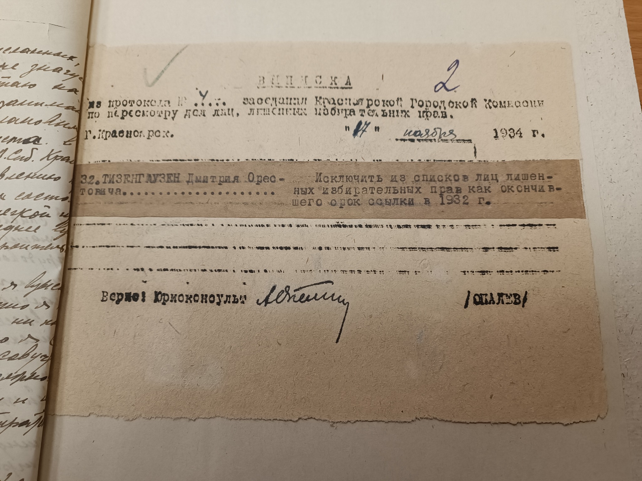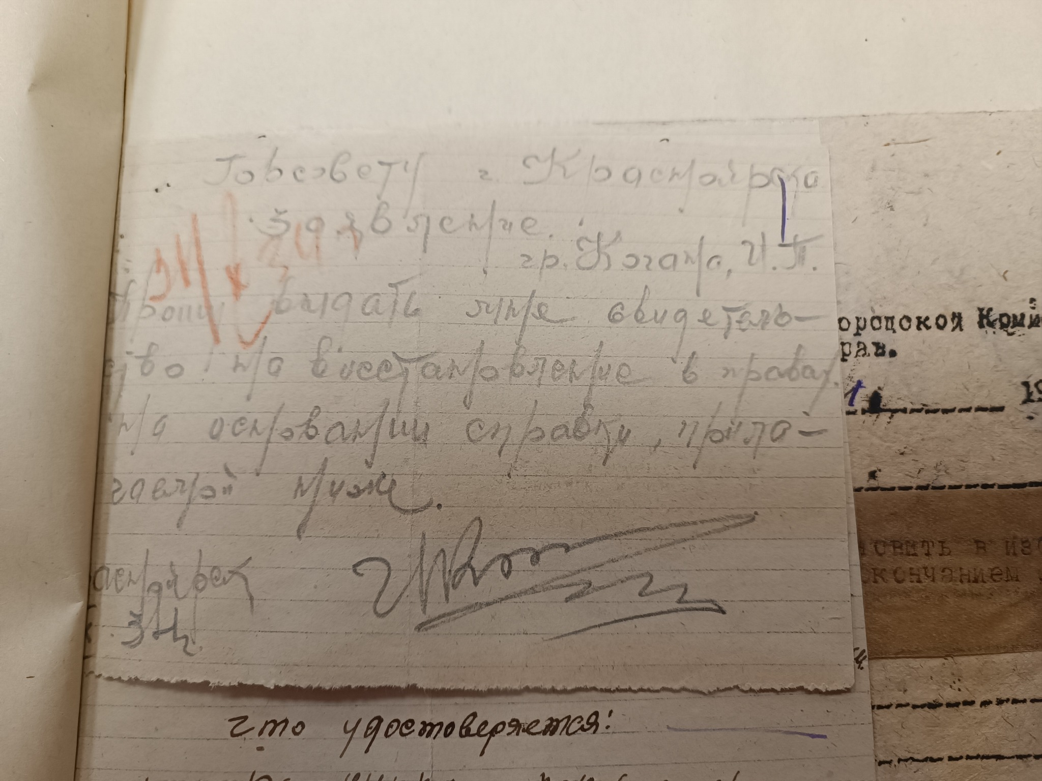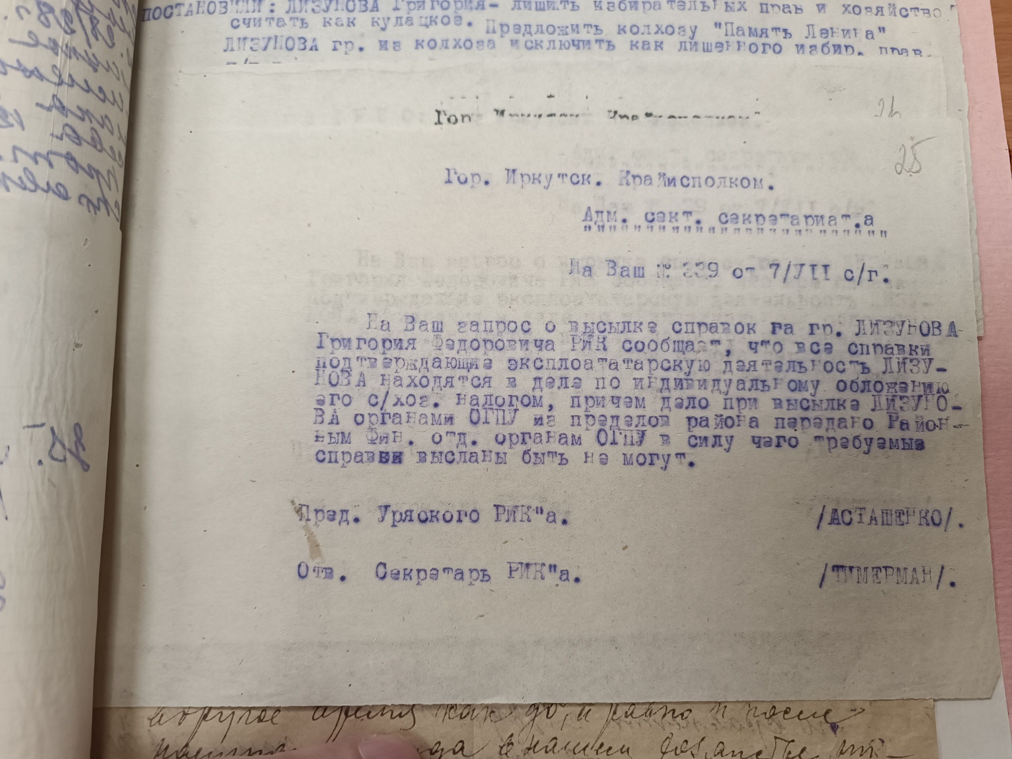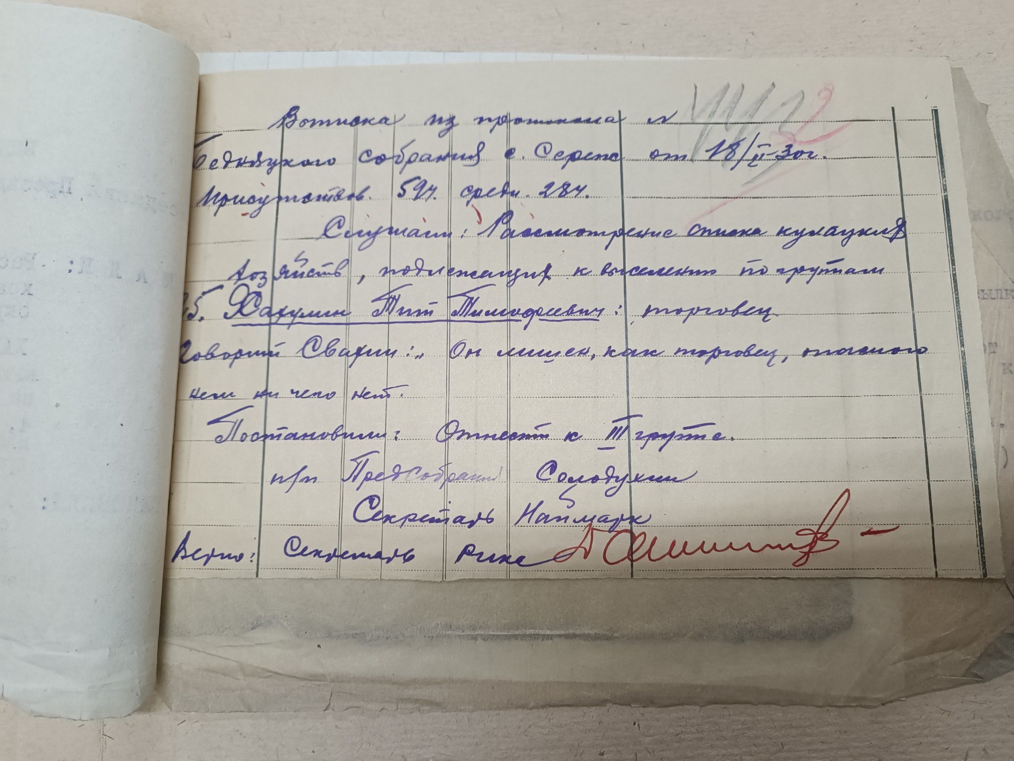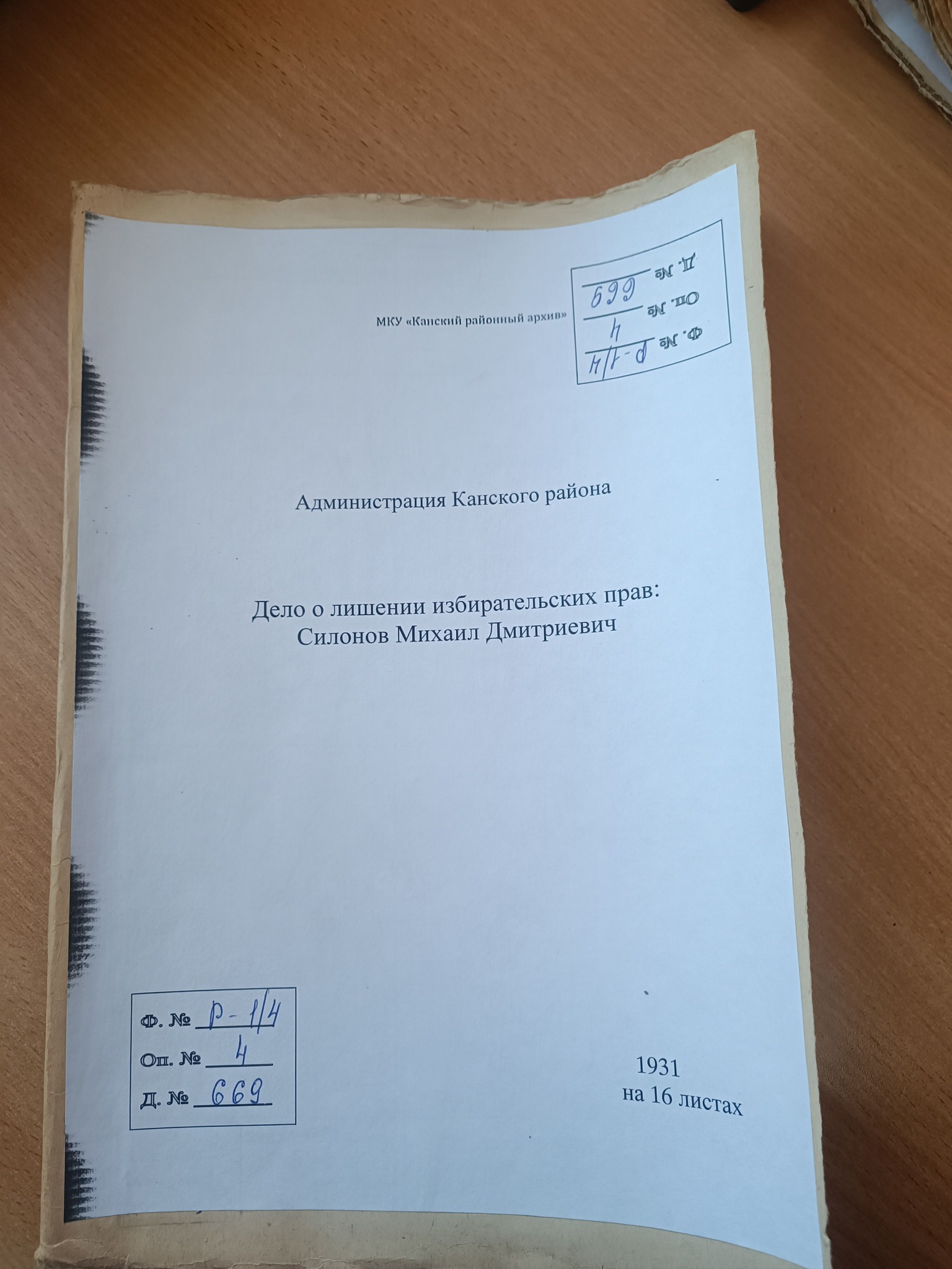Для начала - выписка из решения Рыбинского исполкома лежит в деле уярского лишенца. Такое бывает.