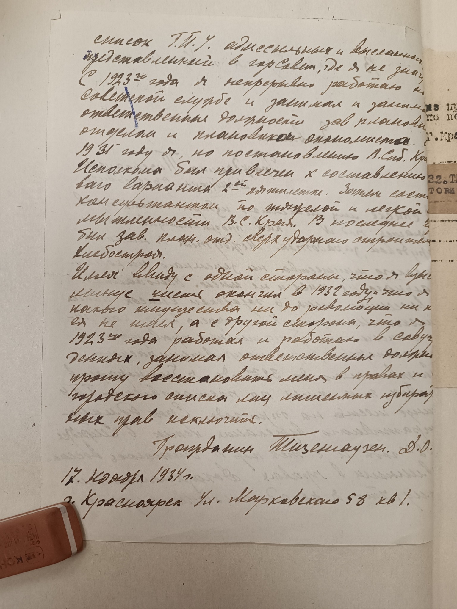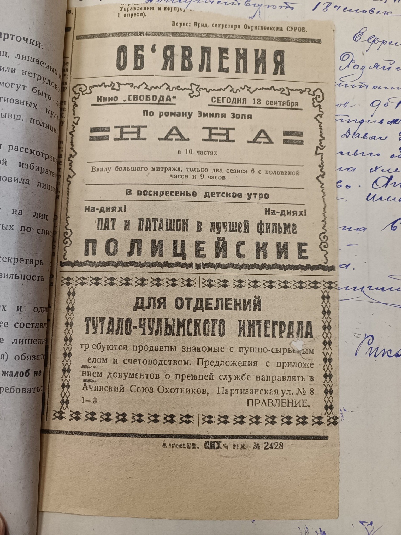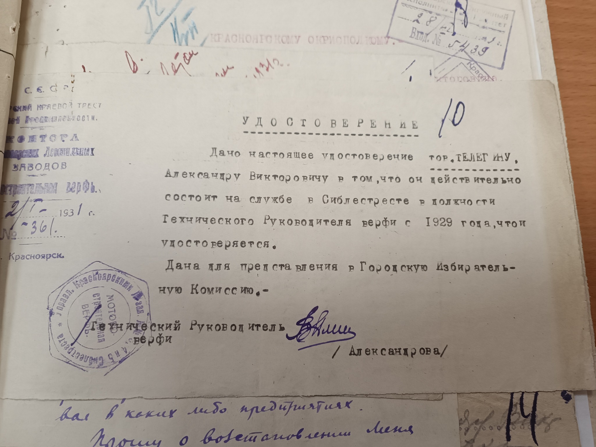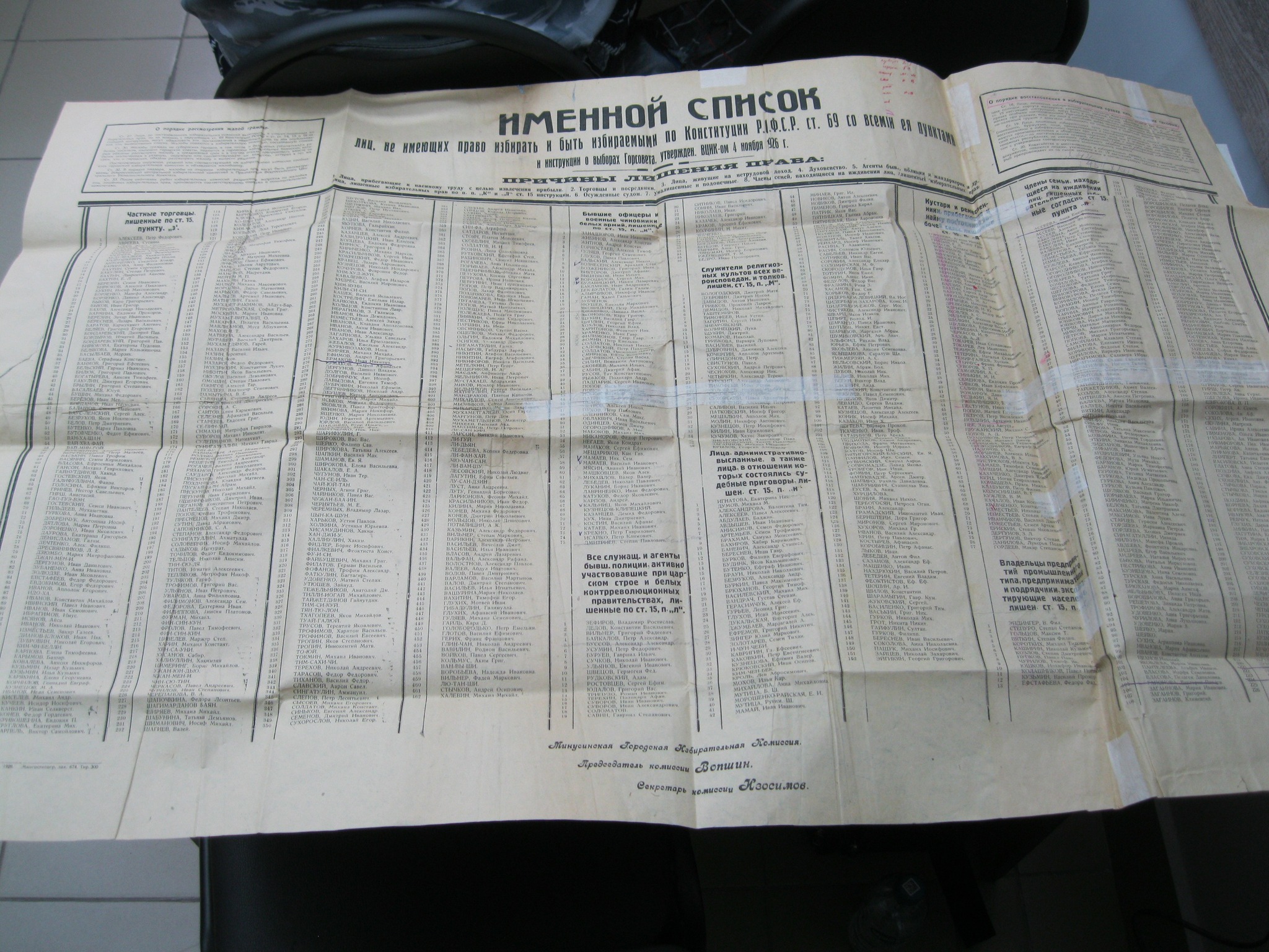 Для начала - выписка из решения Рыбинского исполкома лежит в деле уярского лишенца. Такое бывает.