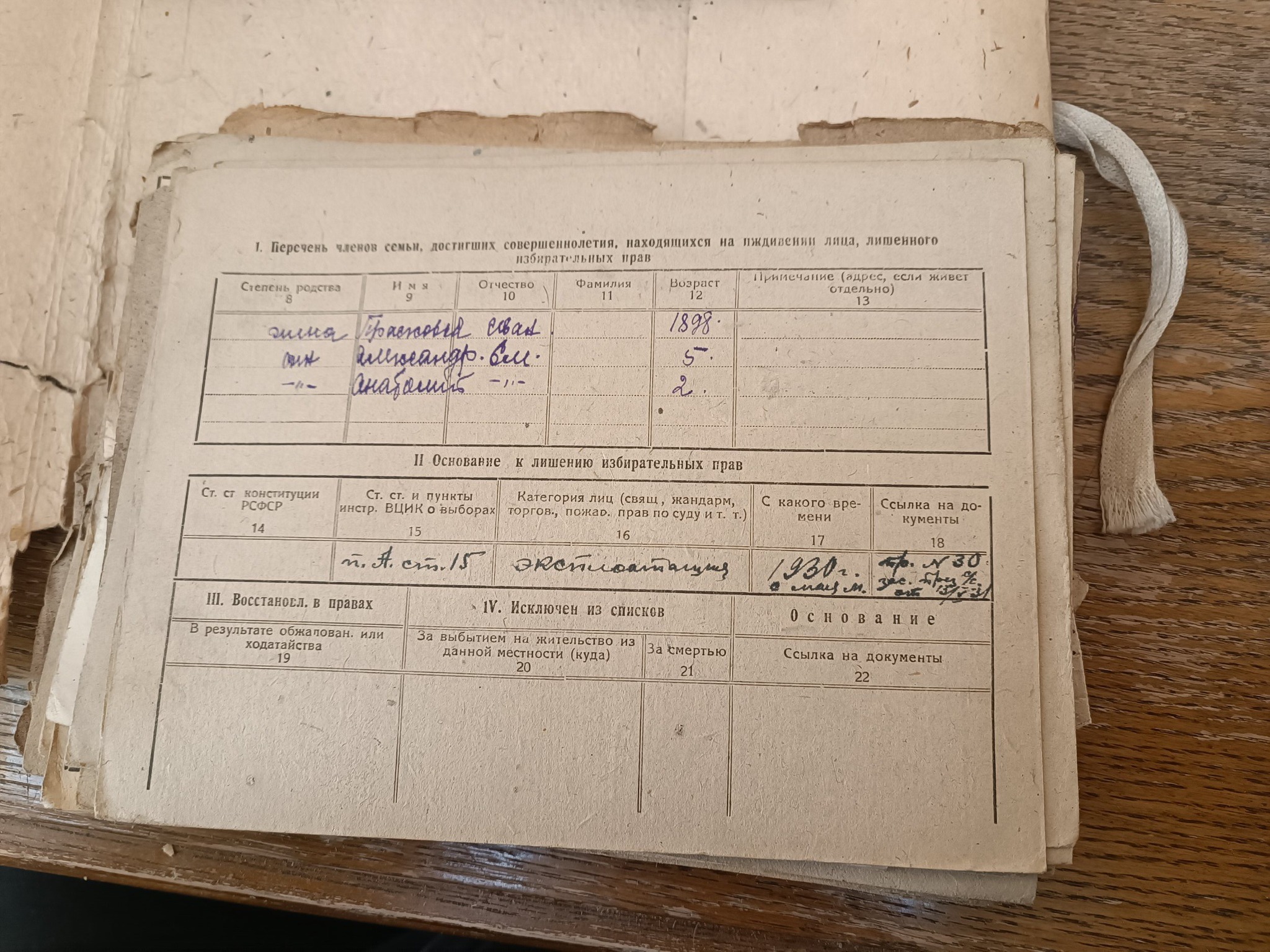 тут уже, как спецпоселенца, лишили избирательных прав ещё раз. Но никаких