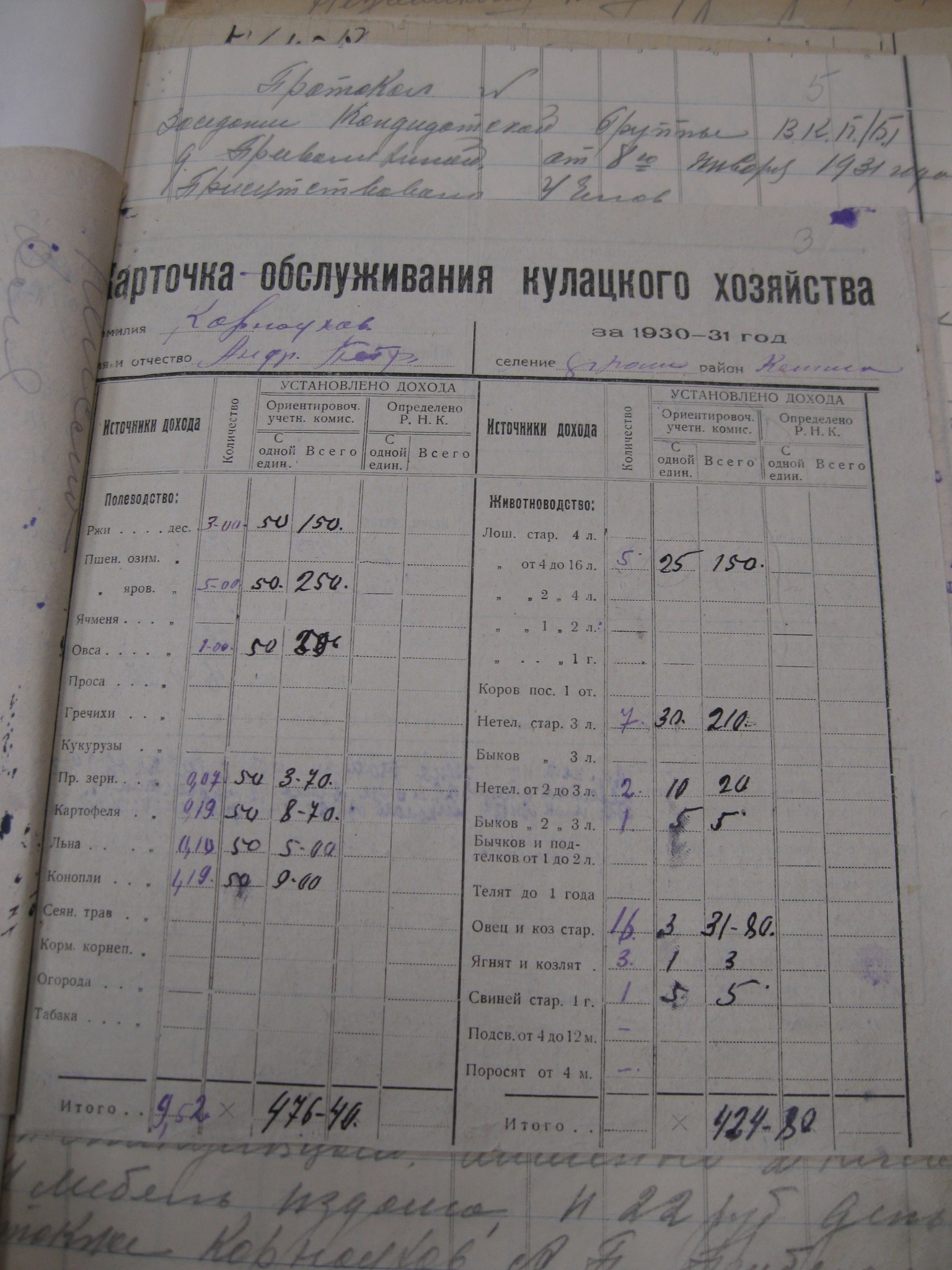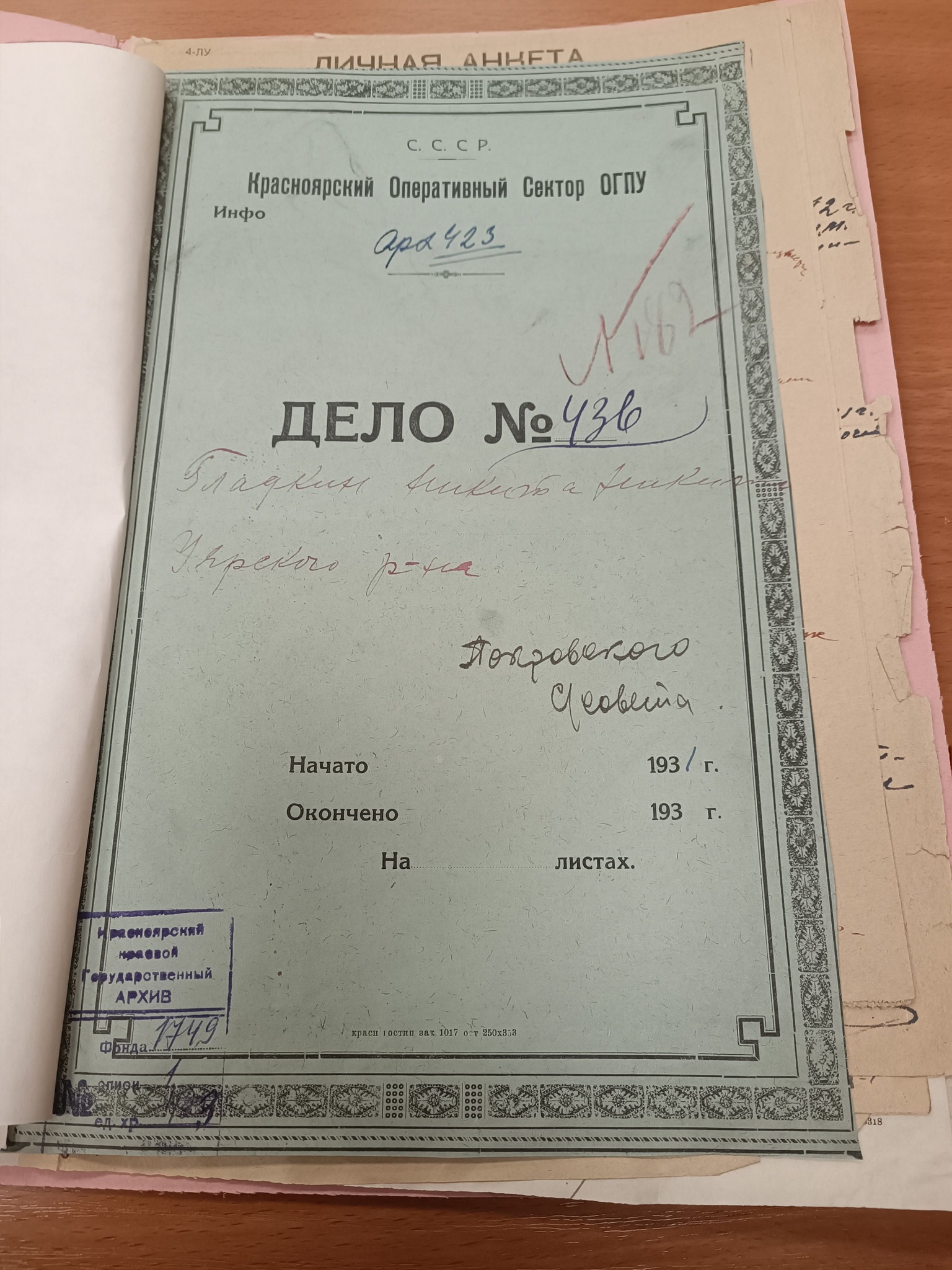 Думал, меня уже удивить в фондах лишенцев нечем. Ан нет, в Канске удивили. До этого личные дела лишенцев были чисто райисполкомовские. Понятно, документы, исходящие из ОГПУ или в ОГПУ, там встречались, но чтобы так... Открываешь личное дело лишенца, а там два или три разных дела внутри, с отдельными обложками, у которых даже нумерация листов сначала была разной. Первым идёт дело ОГПУ от 1930 или 1931 года, там документы, относящиеся к высылке. Потом (с другой обложкой) идёт уже обычное РИКовское дело, или даже два - дело о лишении избирательных прав отдельно, дело о налогообложении отдельно. В общем-то, это логично, потому что источников три - избирательными правами занималась избирательная комиссия, налогами - финотдел, а высылкой - ОГПУ. Но я до этого проработал минимум пятнадцать тысяч дел в разных районах края, нигде такого разделения не было, и нигде ОГПУ не фигурировало столь полно. Причем так выглядят все дела высланных (в делах простых лишенцев ОГПУ, понятное дело, нет). То есть это - система, а не случайность.