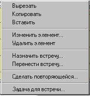 Щелкнув по нужной встрече в расписании правой клавишей, Вы получите контекстное меню:
